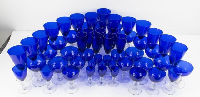 55 Pcs. Morgantown Golf Ball Cobalt Stemware