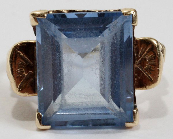 Breathtaking 14 kt Yellow Gold Plate 6.5 Ct Emerald Cut Simulated Sky Blue Topaz Ring1 Great Deal Auctions 4.6(289)$16 days Left