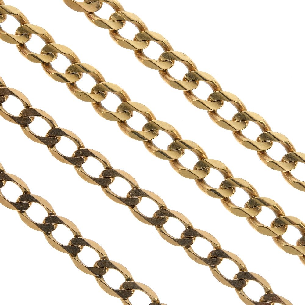 (56315) Two 9ct gold flat curb-link chains.