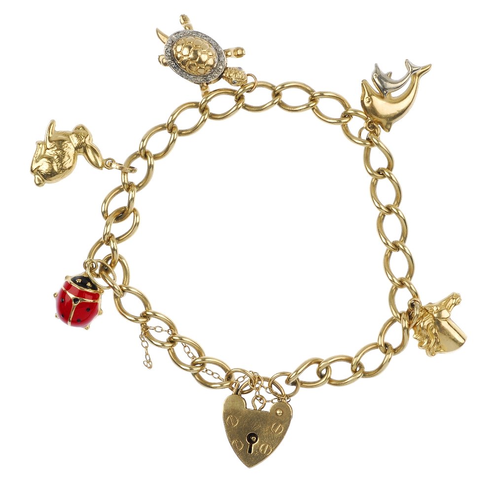 14K gold charm bracelet with 18 charms, including animals and other objects of travel. 6 charmsTremont Auctions4.6(313)$1,100(2 bids)Mar 01, 2026