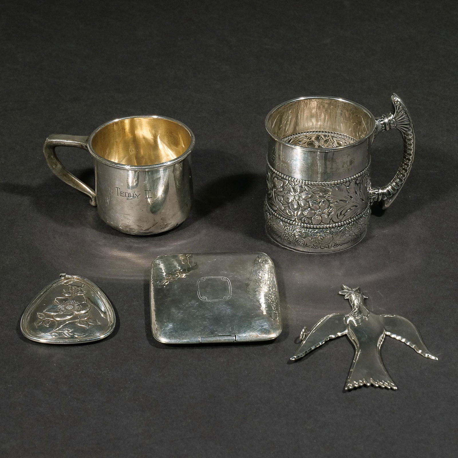 Group Lot of Silverplate Items6 days Left6 Piece Lot of Antique Persian Silver ItemsFeb 18, 2026Lot of Nine Sterling Silver Cups & Tankards15 hrs LeftLot of 4 Silver Napkin Rings - 3.74 Oz. Troy16 hrs LeftLot of 5 Silver Plate, incl. George Gebelein of BostonFeb 21, 2026Collection of silver consisting of pepper and salt shakers, jugs, bell, bowl and statue of a boy,Feb 15, 2026Group of 5 Beer Steins/Mugs15 hrs LeftA Group of Sterling Silver DecorFeb 25, 2026(8 PCS) ENGLISH STERLING SILVER BEVERAGE SERVICEFeb 22, 2026Assorted Table Items,STERLING. Assorted Sterling Hollowware.2 days LeftFive Piece Gorham Sterling Tea ServiceFeb 25, 2026ASSORTED SILVERWARE. Weighable silver 252 grams, silver inkwell 136 grams. (qty)3 days Left(3) Chinese silver trophiesFeb 19, 2026(4pc) GORHAM STERLING COFFEE SERVICEFeb 22, 2026Gorham Plymouth Sterling Silver Tea Service6 days Left