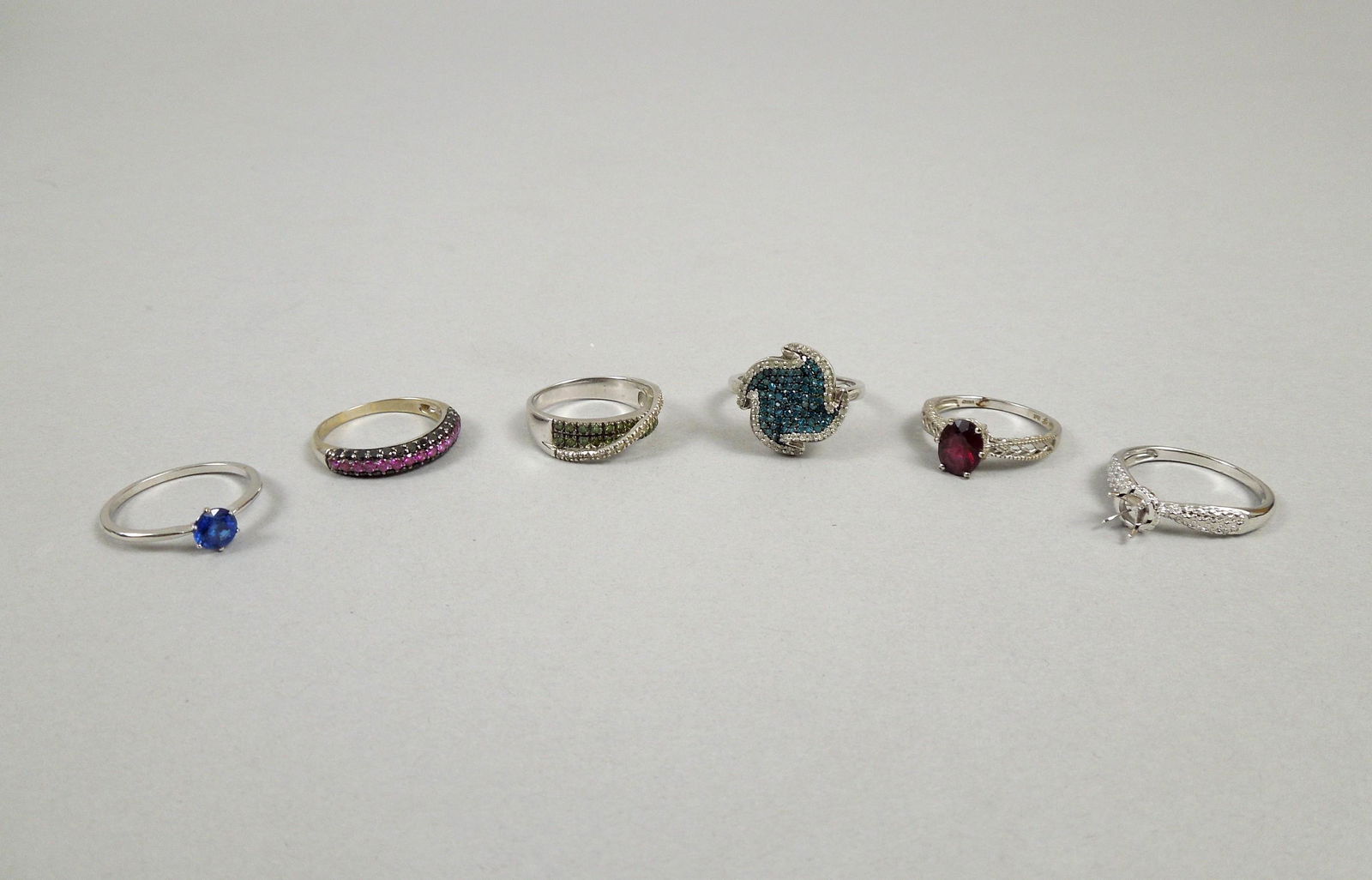 (6) 10k White Gold Rings.