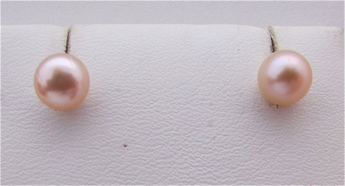 6 1/2mm Pink Pearl Stud Earrings with Silver Posts
