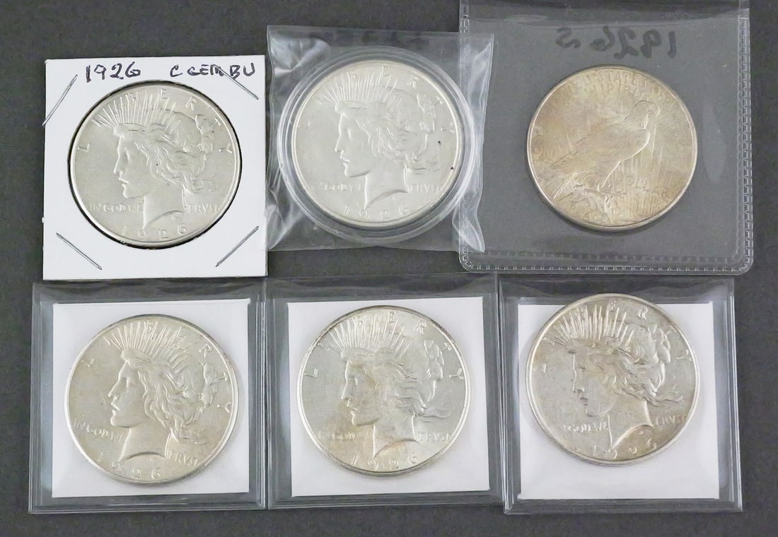 (6) 1926 Peace Silver Dollars