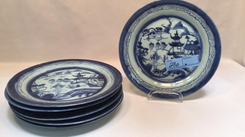 Antique Chinese Canton Blue & White Plates & Book