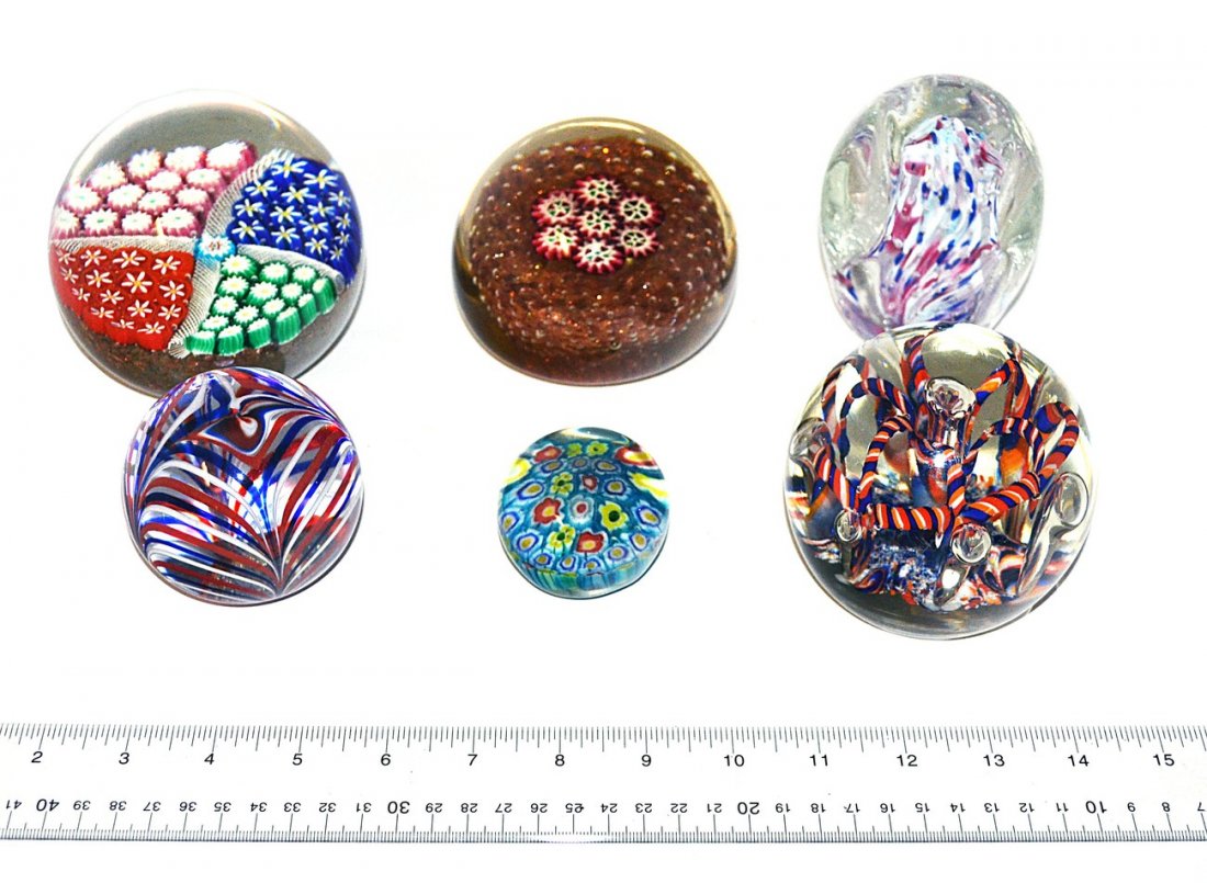 6 Assorted Millefiori & Colored Cane Paperweights
