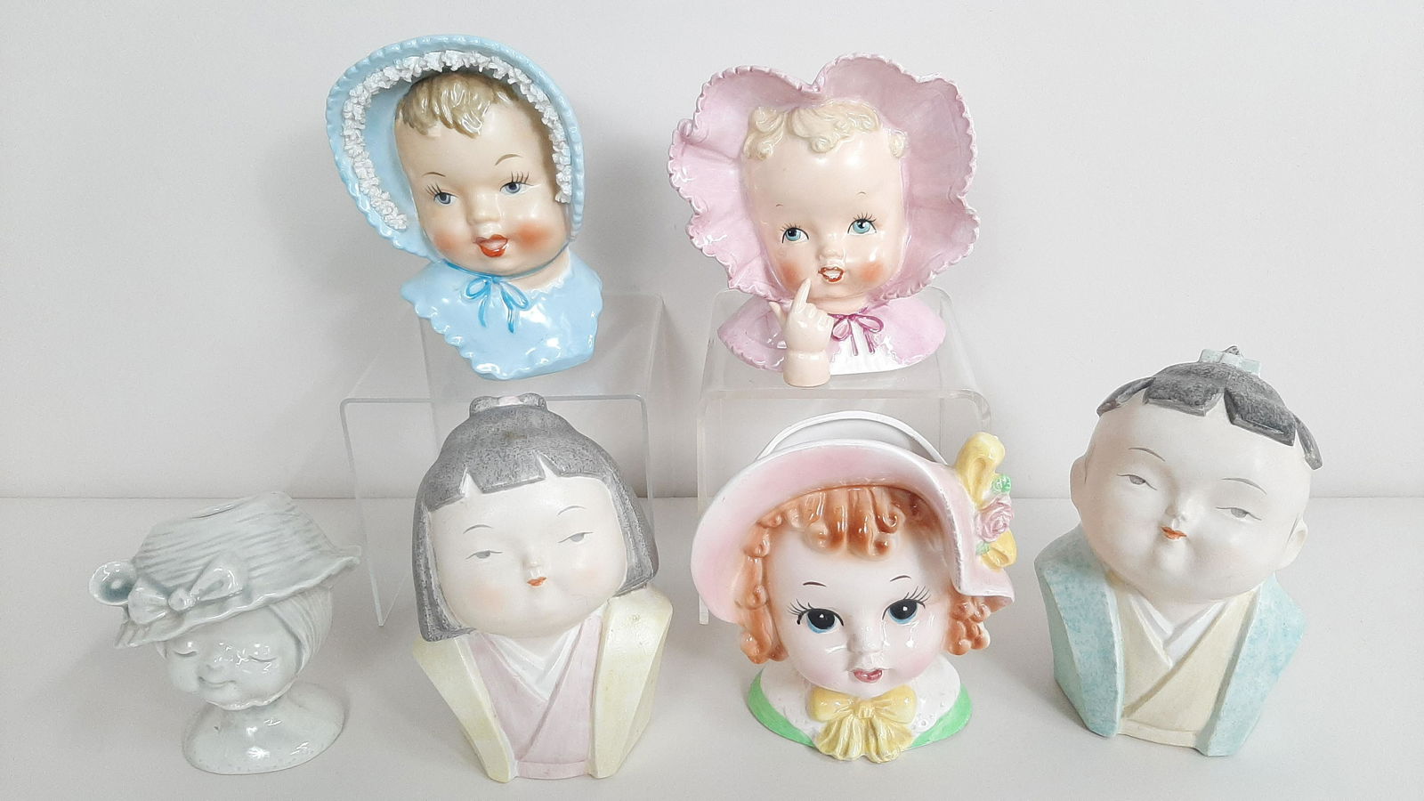 6 Baby Head Vases