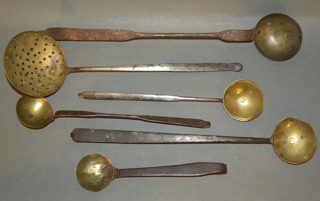 6 brass & iron ladles