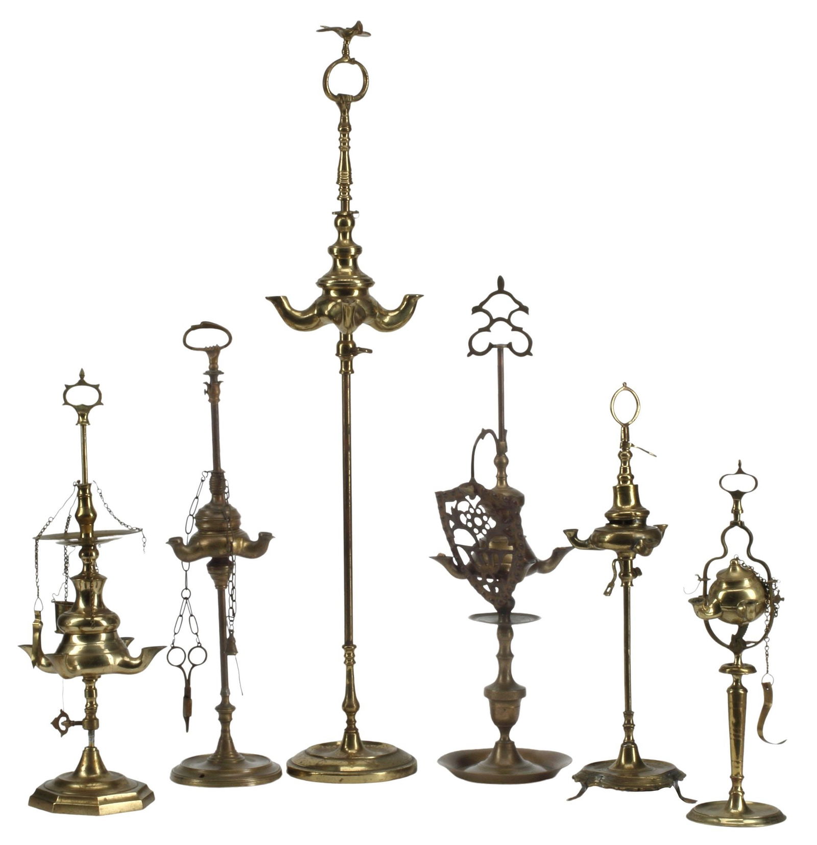 (6) BRASS OIL LAMPS