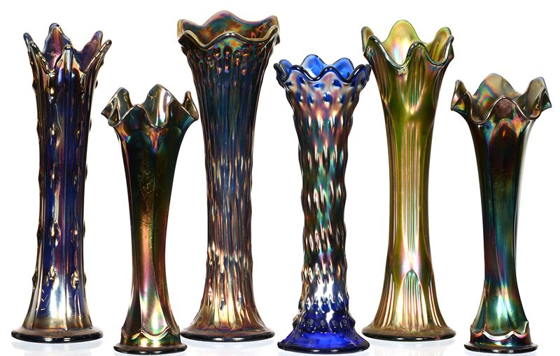 (6) CARNIVAL GLASS VASES