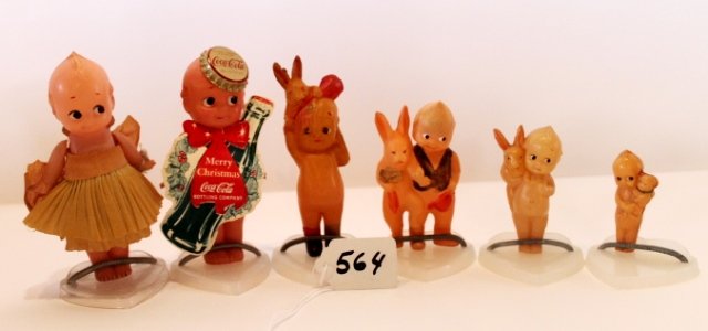 (6) Celluloid Kewpies. (right) 3 3/4" With Rabbit