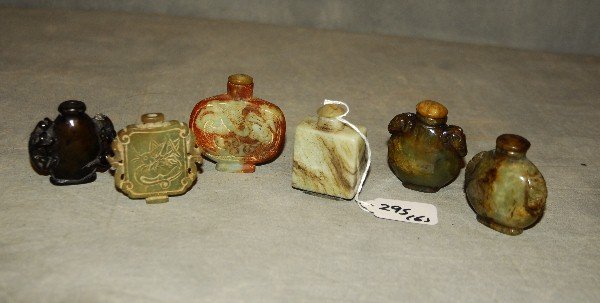 6 Chinese jade snuff bottles. Largest: 2.5"