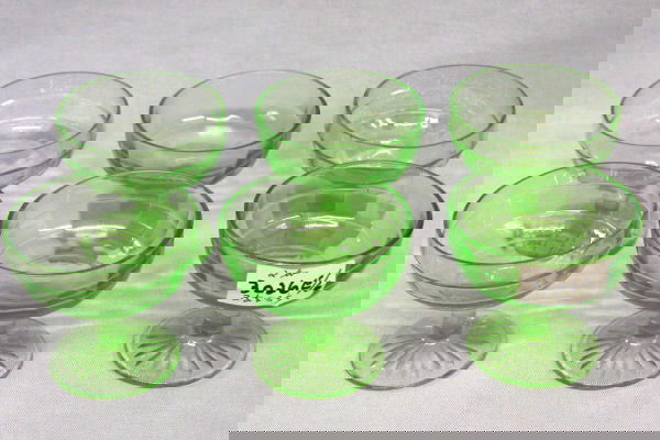 6 DEPRESSION VASELINE BLOCK OPTIC SHERBERTS 3.5"H,