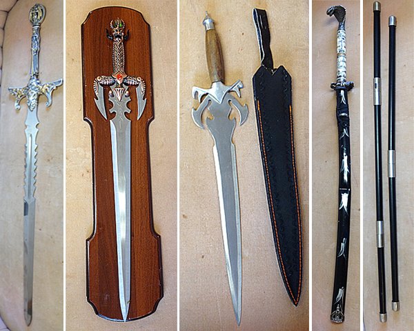 LOT 4 KNIVES WITH DECORATIVE HANDLESMar 05, 20264PC LOT OF TOLEDO STYLE SWORDSMar 07, 2026Lot of 4 Mid-19th Century Franch Bayonets and Vintage Hunting Knives with Leather Sheaths5 days LeftLOT OF 6: WWII ERA PHILIPPINE HANDMADE BUTTERFLY BATANGAS BALISONG KNIVES.1 day LeftLOT OF 6: WWII ERA PHILIPPINE HANDMADE BUTTERFLY BATANGAS BALISONG KNIVES.1 day LeftLOT OF 2: GOLD RUSH ERA DAGGERS WITH ONE ETCHED GOLD SEEKERS PROTECTION.1 day LeftLOT OF 2: US CIVIL WAR M1850 STAFF & FIELD OFFICER'S SWORD AND FRATERNAL SWORD.Mar 03, 2026LOT OF 2: US CIVIL WAR M1850 STAFF & FIELD OFFICER'S SWORD AND M1902 OFFICER'S SWORD.Mar 03, 202620" Hand-Forged Damascus Steel Sword with Camel Bone Handle & Leather SheathVintage Spanish Toledo Medieval-Style Decorative Sword w/ Leather ScabbardMar 07, 2026Stunning MEDIEVAL ARMING Damascus SwordMar 17, 2026Stunning MEDIEVAL ARMING Damascus SwordMar 05, 2026Stunning MEDIEVAL ARMING Damascus Sword3 days LeftExtremely Rare 19th C. Belgian Diplomat SWORD Ornate Gilded HiltMar 28, 2026THE GLADIATOR Damascus SwordMar 17, 2026Spanish Toledo Medieval-Style Decorative Sword ReplicaMar 07, 2026