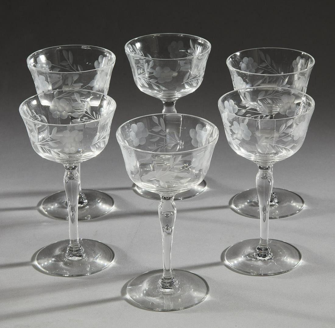 (6) Etched crystal wine glasses