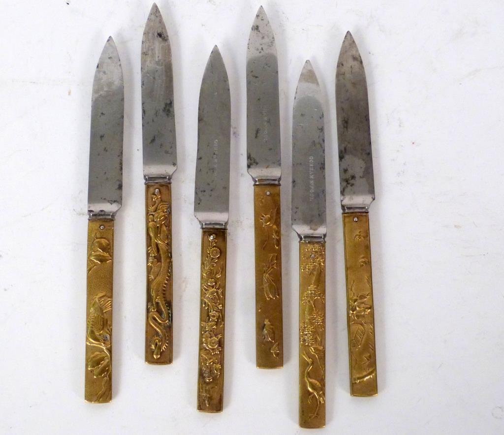 LOT 4 KNIVES WITH DECORATIVE HANDLESMar 05, 2026LOT OF 5: SCHRADE AND SCHRADE CUT CO. POCKET KNIVES.7 days LeftLOT OF 6: WWII ERA PHILIPPINE HANDMADE BUTTERFLY BATANGAS BALISONG KNIVES.7 days Left7 Piece Sterling Silver Stieff Flatware ItemsFeb 28, 2026(7) Dominick and Haff Mazarin Sterling Handled Steak Knives6 days LeftGORHAM SILVERWARE 8 PIECE KNIFE SET STERLING AND STAINLESS STEELJun 29, 2025Gorham Golden Scroll Sterling Silver Steak Knife Set 4pc Texas SizedFeb 28, 2026Gorham Golden Scroll Sterling Silver 6-Piece Trout Knife Set3 days LeftGorham Rondo Sterling Silver Steak Knife Set 4pc Custom Made 8.5"2 days Left6 Retired Mikasa Estasi Stainless French Knives7 days Left5 Vintage King Cedric Stainless Steel KnivesJul 17, 2025Gorham Old French Sterling Silver Steak Knife Set 4pc 8 1/2"Mar 02, 2026Gorham King Edward Sterling Silver 8pc Steak Knife Set Not SerratedMar 02, 2026SET OF 6 STERLING HANDLED KNIVES BY ALVIN, 8 7/8" L3 days LeftGorham Greenbrier Sterling Silver 8pc Steak Knife Set Not SerratedMar 02, 2026Gorham Greenbrier Sterling Silver 6pc Trout Knife Set Custom MadeMar 03, 2026