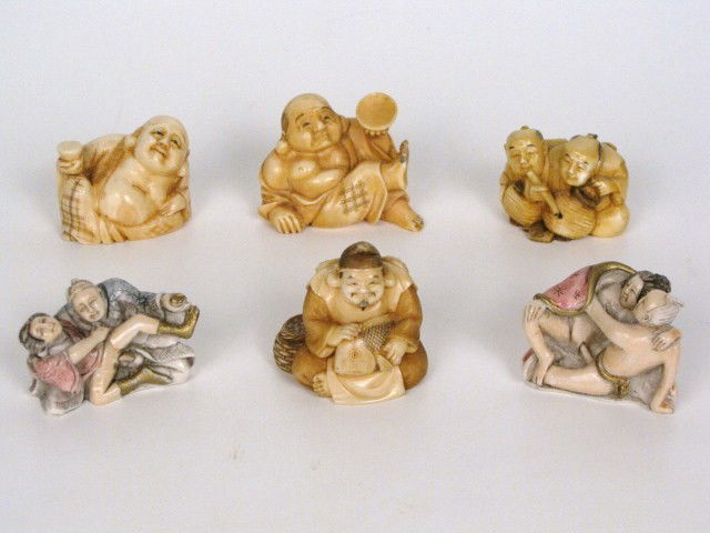 6 JAPANESE NETSUKES & FIGURES