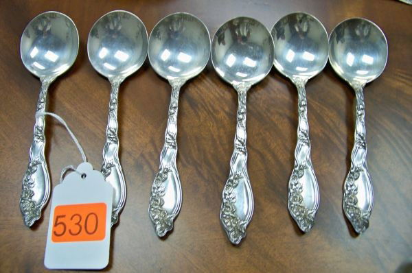 6 LARGE STERLING SOUP SPOONS