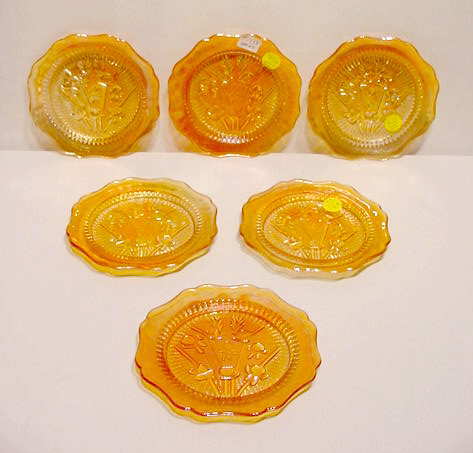 6 Marigold Iris & Herringbone Plates 5 1/2"