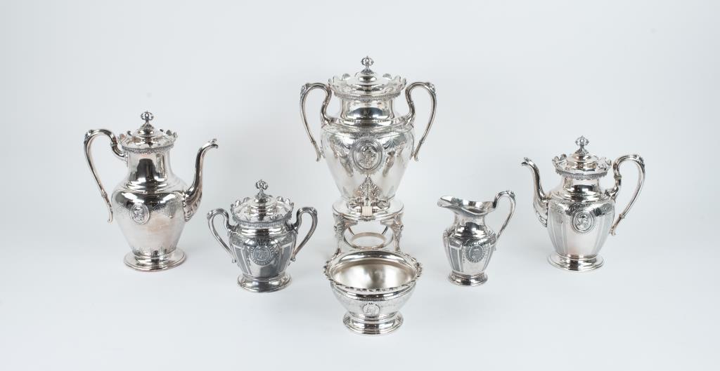 A FOUR-PIECE SILVER 'BAMBOO' TEA AND COFFEE SERVICE, MARK OF ZEE WO, SHANGHAI, CIRCA 1870-1925Mar 11, 2026SILVERPLATE TEA AND COFFEE SERVICE3 days Left6-Pc. Reed & Barton Repousse Tea SetMar 07, 2026(4) PIECE ASSEMBLED STERLING TEA SERVICEMar 05, 2026(8 PCS) ENGLISH STERLING SILVER BEVERAGE SERVICE3 days LeftSilver Plated Tea Service Grouping (6)Mar 07, 2026American Aesthetic Silver-Plate Four Piece Coffee Service, late 19th c., Coffee- H.- 12 1/4 in., W.-Feb 27, 2026Frank W. Smith "Georgian" sterling tea service.4 days Left3 pcs Vintage Silver Plated Tea Pots, incl. 1x W.W.H. & Co. & 1x Homan. Very Good Condition.A Four-piece Silver Tea and Coffee Service, possibly Peruvian2 days LeftRococo Style Silver Plate Coffee And Tea Set (7-piece), C. Mid-late 20th Century7 days LeftA Six Piece Tiffany & Co Sterling Tea & Coffee Service14 hrs LeftThomas Warner (Baltimore) American Silver Three-Piece Tea Service, c. 1810-1830Mar 08, 2026A six piece German 800 standard silver tea and coffee service, Wilhelm Binder, Schwabisch Gmund6 days Left3 pcs Vintage Silver Plate Tea Pots, incl. 2x Silver on Copper Pieces. Very Good Condition.6 Piece Sterling Silver Tea and Coffee Set6 days Left