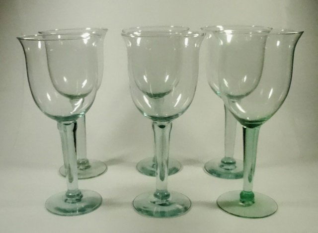 6 PC LARGE GREEN GLASS GOBLETS, APPROX 9.5"H