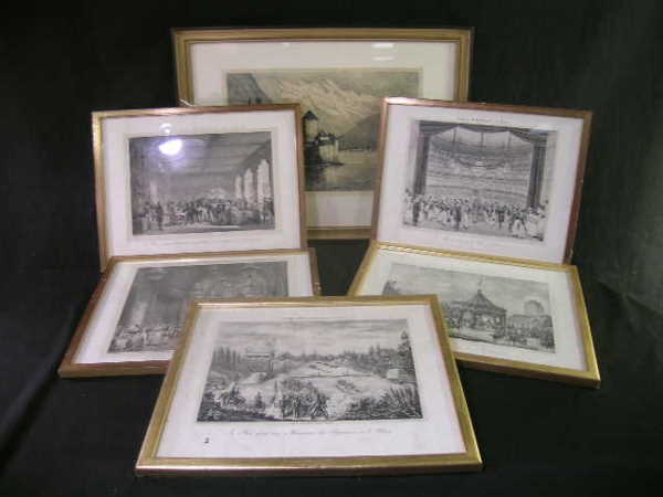 6 PCS ASSORTED PRINTS GERMAN FRENCH FRAMED
