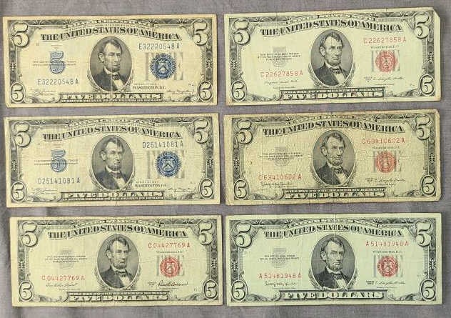 Lot of (6) American Silver CertificatesMar 15, 2026US $5 $10 Silver Certificate Notes 1934 & 1953 LOTMar 11, 2026Lot of 2- 1953-A $5 Notes - Silver CertificatesUS 1935 H $1 Silver Certificates, Paper, Fr. 1618US 1935-1957 $1 Silver Certificates, Paper, Fr. 1608, 1614, 1620Early United States Paper CurrencyMar 20, 2026US 1935 Series $1 Silver Certificates, A Group of 4 BanknotesUS 1934 C and 1934 D $5 Silver Certificates, Paper, Fr. 1653 and 1654US 1935-1957 $1 Silver Certificates, Paper, A Collection of Banknotes1934-A $5 Silver Certificate K-A Block Non-Mule FR. 1651 Fine Grade Note8 hrs Left1935-H $1 Silver Certificate 51 Consecutive Notes Choice Uncirculated4 days Left1935-A $1 Silver Certificate S-C Block with S Surcharge Fine4 days LeftGroup of Four Small Currency NotesMar 10, 20261935-A $1 Silver Certificate FR. 1608* Non-Mule Choice CU Star Note2 days Left1934D $5 Silver Certificate Type 1654 Star PCGS Gem Uncirculated 66PPQ4 days Left1935-A $1 Silver Certificate R Surcharge S-C Block Fine3 days Left