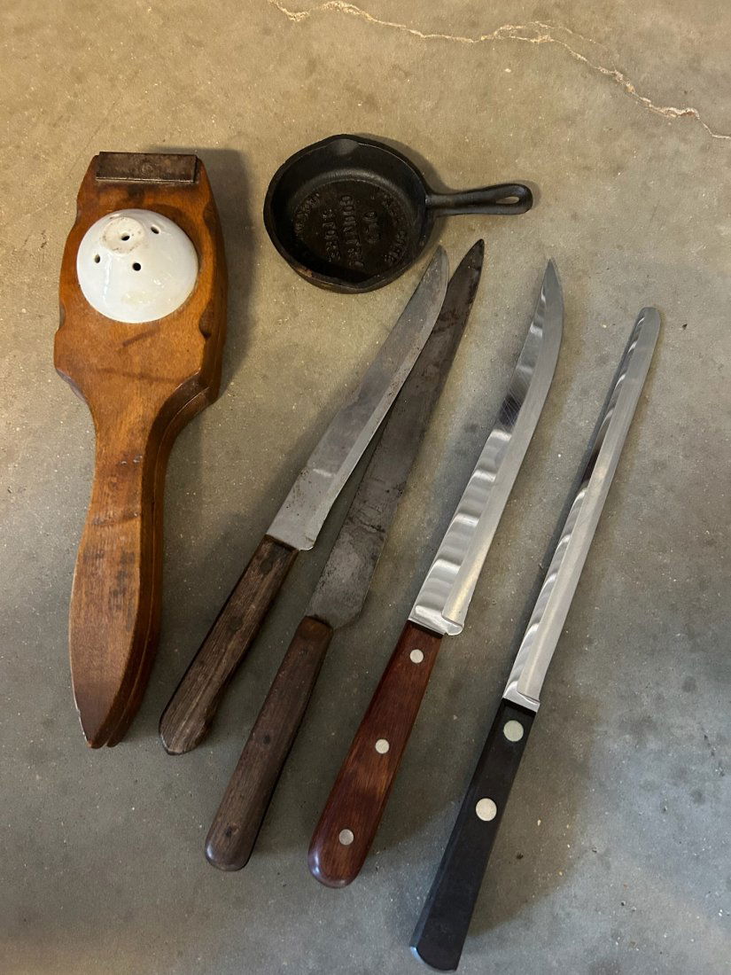 LOT OF 24 RIGID POCKET KNIVES & SHEATHSMar 22, 2026LOT 4 KNIVES WITH DECORATIVE HANDLES4 days LeftLot Vintage Kitchen Utensils3 days LeftLot of Kitchen Knives3 days LeftLOT OF 9 COLLECTOR KNIVESMar 22, 2026LOT OF 9 BUCK COLLECTABLE KNIVESMar 22, 2026LOT OF 14 VINTAGE BUCK KNIVESMar 22, 2026ASSORTED MANUFACTURERS VINTAGE AXES / HATCHETS, LOT OF FOUR3 days LeftLOT OF FOUR KNIVES AND WOODSMAN'S PALMar 22, 2026LOT OF 6 RIGID FIXED BLADE KNIVESMar 22, 2026ASSORTED MANUFACTURERS VINTAGE AXE / HATCHETS, LOT OF FIVE3 days LeftLOT OF 6 BUCK HUNTING AND BOWIE KNIVESMar 22, 2026Lot of 3 Vintage SCHMIDT BROS. Germany Stainless Steel Knives2 hrs LeftSterling Silver Including Georg Jensen Utensils, Tools, Grooming, Job Lot (15)Mar 28, 2026ASSORTED FORGED CHAIRMAKER AND COOPER CURVED DRAW KNIVES / SHAVES, LOT OF FIVE3 days LeftLOT OF THREE T.W. DOWNING KNIVESMar 22, 2026