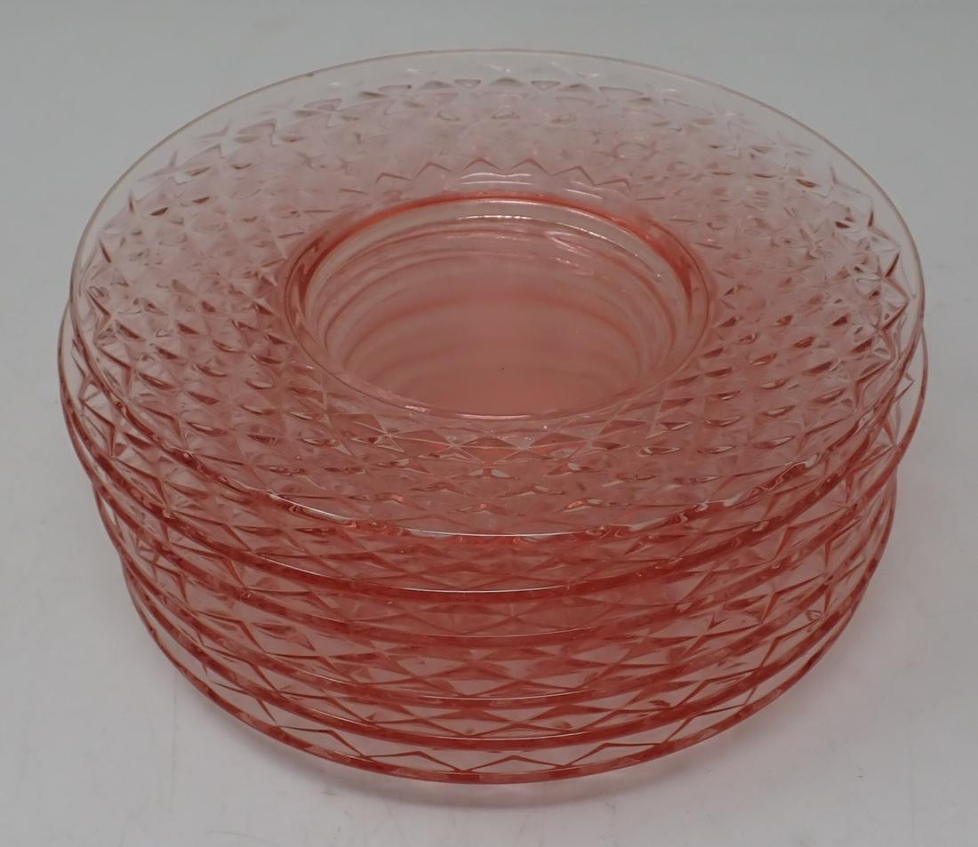 6 Pink Depression Saucers