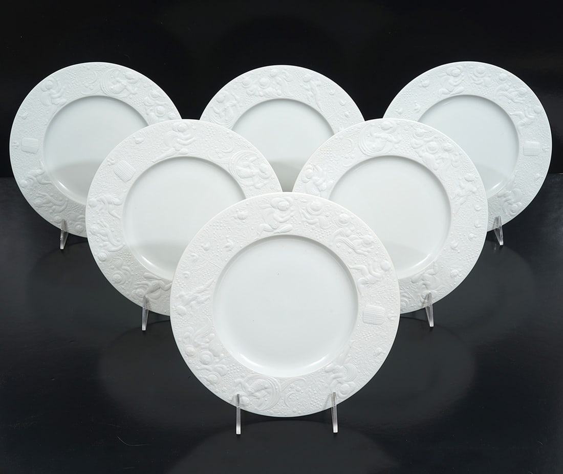 Sold6 Rosenthal Porcelain "Magic Flute" Dinner Plates6 Rosenthal porcelain "Magic Flute" dinner plates that have whimsical storytelling scenes embossed on the borders. Gold script decoration underside. Each plate has an 11" diameter. Condition report: GSee Sold Price