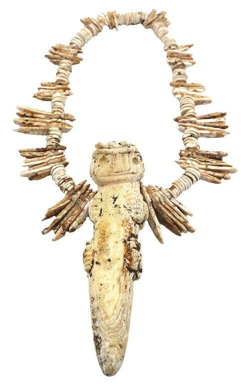 Lot of (3) Jewelry ItemsMar 15, 2026Egyptian Faience Necklace with PendantMar 04, 2026Ancient Ikhoko amulet - PENDE - DR CongoVIKING LUNAR PENDANT NECKLACE C.900-1000 AD.Tairona Carnelian Necklace with Five Figural Pendants4 days Left1 1/8" x 2 1/16" Pre-Columbian Parrot Effigy Pendant, Jade, Motley/Leithoff COA, Reportedly found inMar 08, 20261622. - Vintage Yves Saint Laurent crocodile-embossed necklace in alloy and plated goldMar 01, 2026VINTAGE BEAUTIFUL STERLING SILVER SHELL NECKLACEMar 19, 2026A Prehistoric Spindle Shell and Stone Bead Pendant Necklace Strand, 72g, 24AA822 Lots Away9-1/2" Bird Effigy Scepter, COA Roy Motley & John Leithoff, Made of Bone, Found in Peru, Ex. SteveMar 08, 2026Costa Rican Serpentine Saurian Tubular Pendant4 days LeftMother-of-Pearl and Shell Beaded Necklace with Carved Floral Pendant5 days LeftVintage folk ethnic wired bauxite beaded collar necklace with fringe7 days LeftNavajo 925, Turquoise, Natural Material Necklace541 Lots AwayOld Native American Buffalo Teeth Necklace. 77 Buffalo teeth, Buckeye seed, cord. Superb example.7 days Left3.68 Ctw SI2/I1 Diamond 18K Yellow Gold Fish Pendant Necklace4 days Left