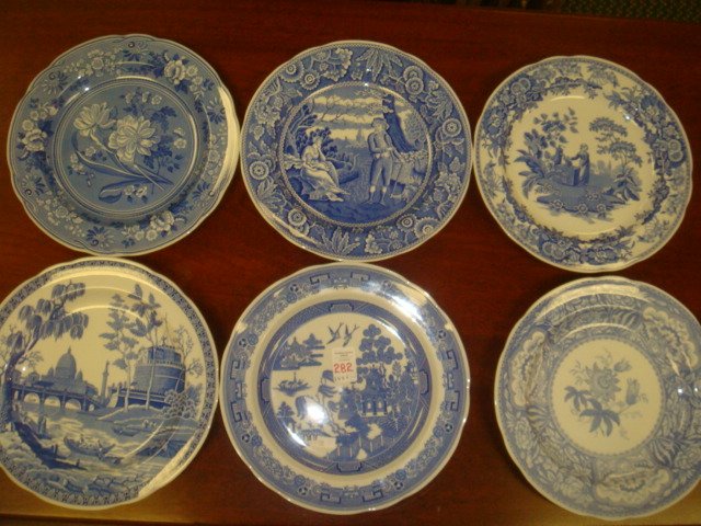 6 SPODE Blue Room Plates, From Engraved Copper Plates: