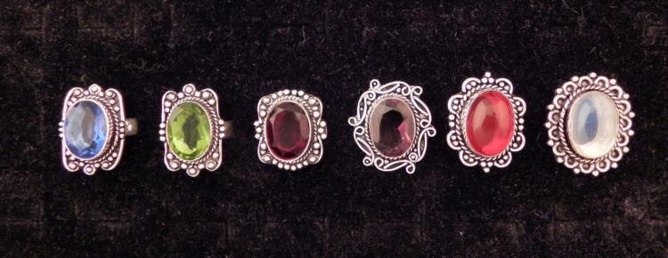 6 Sterling Rings Sapphire Emerald Garnet Ruby Moonstone