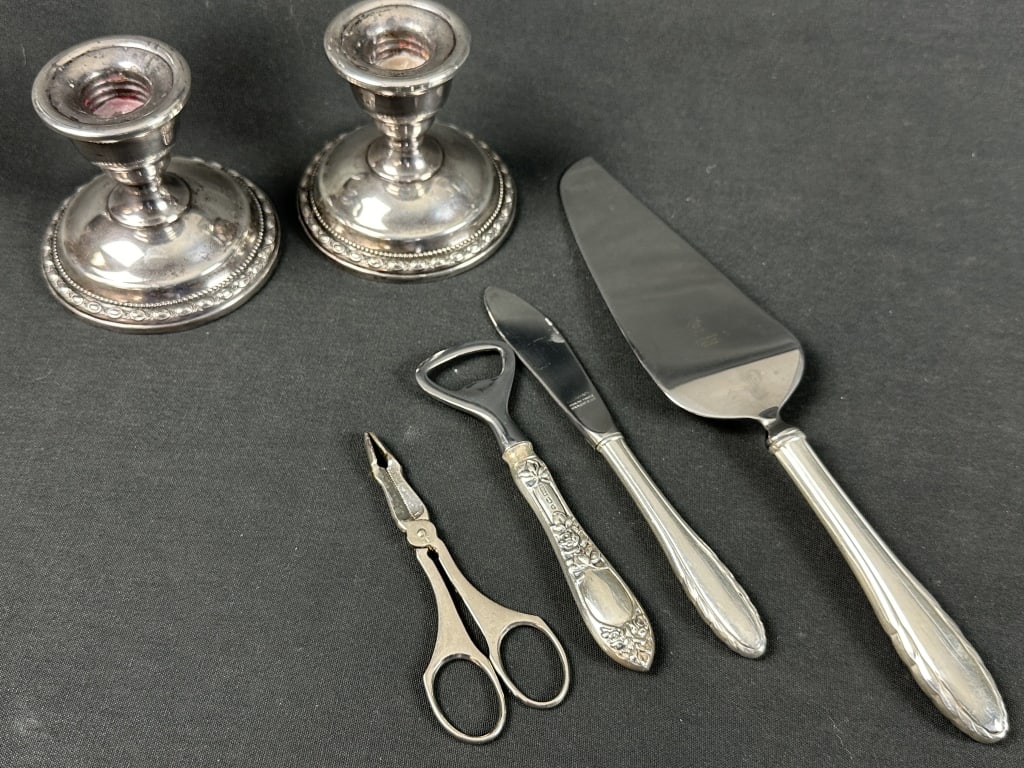 Estate lot misc. STERLING SILVER including one pair weighted bottom candlesticks, and misc.JMW Auction Service4.6(497)$1,000Apr 10, 2026