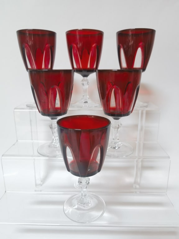 (6) Vintage Ruby Cut-to-Clear Wine Glasses