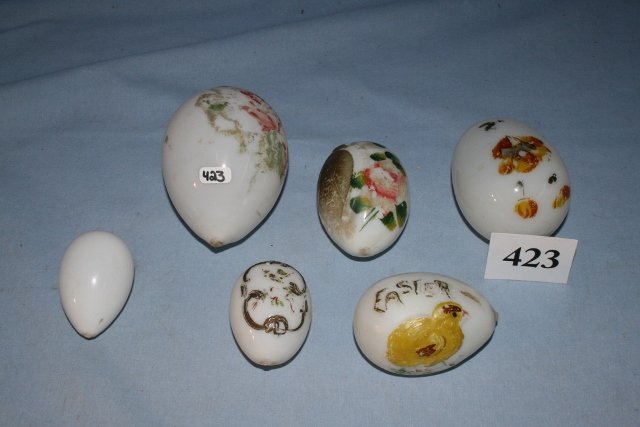 6 White Glass Easter Eggs