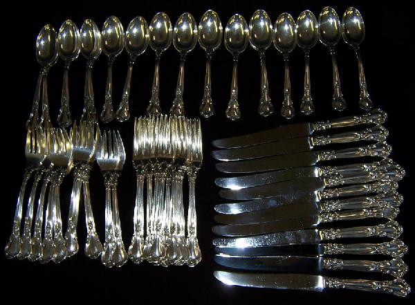 60 piece set "Chantilly" pattern sterling flatware.