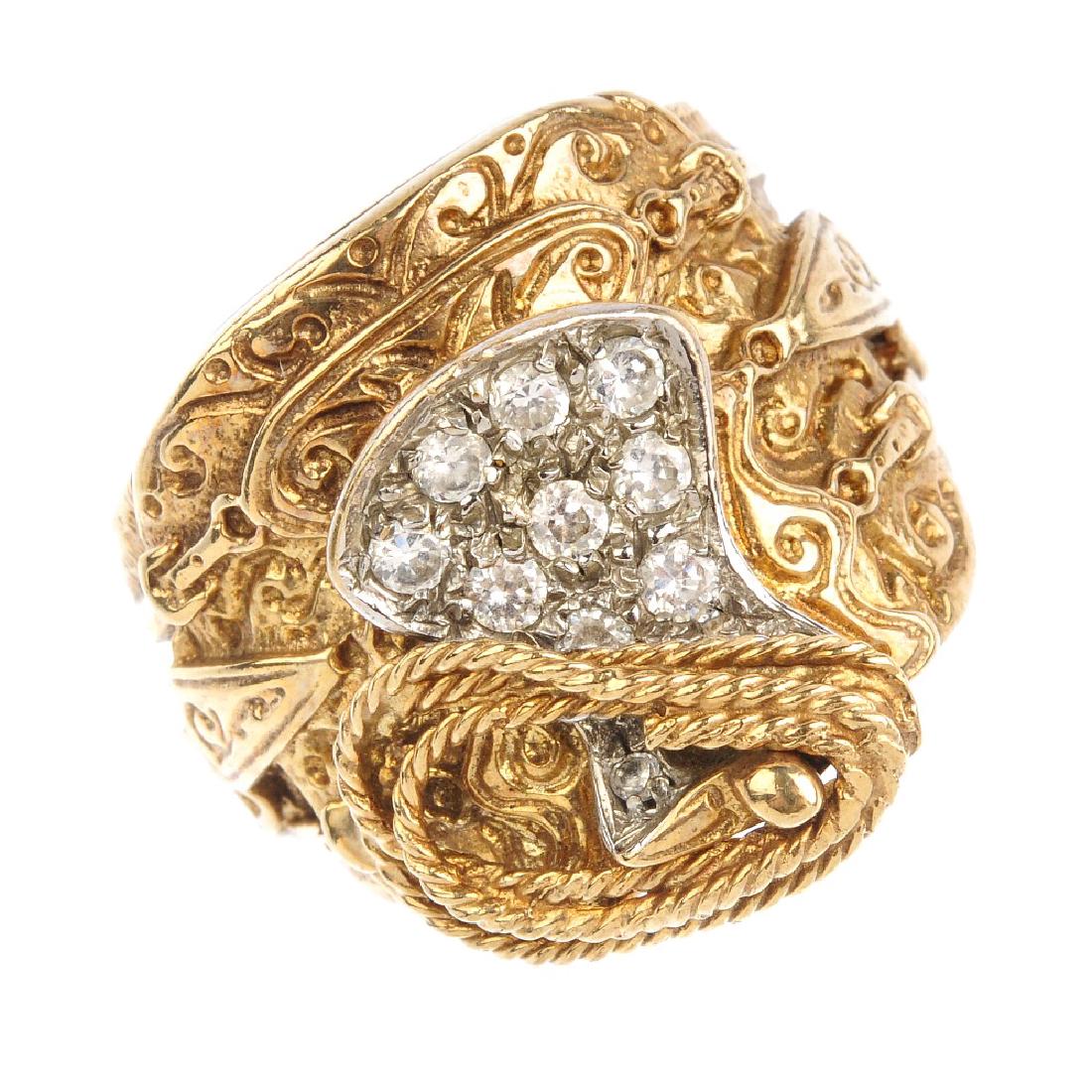 (61127) A 9ct gold saddle ring. Hallmarks for