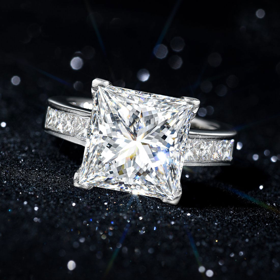 6.13-Carat Square Brilliant-Cut Diamond Ring
