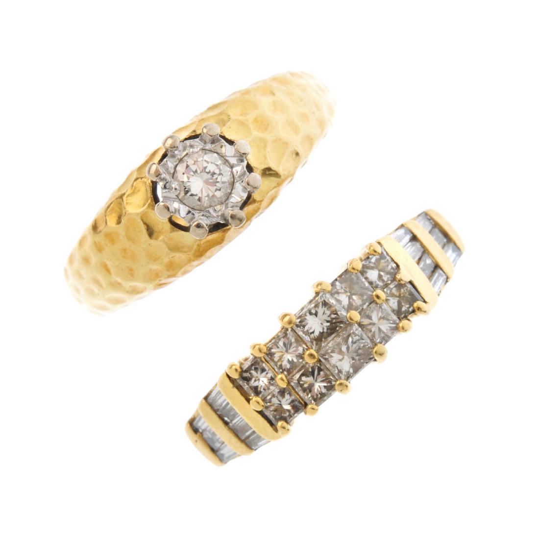 (61889) Two 18ct gold diamond rings. To include a