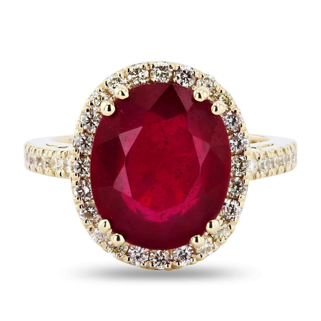 6.28ct Ruby and 0.54ctw Diamond 14K Yellow Gold Ring