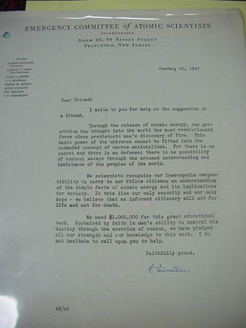 629C: Solicitation Letter from Albert Einstein:
