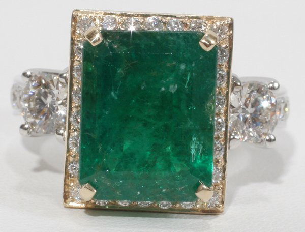 6.29CT EMERALD & 1.32 CT. SIDE DIAMOND RING