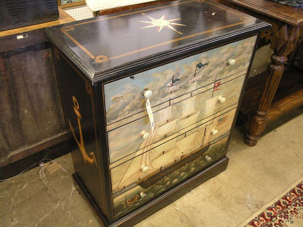 641: Nautically themed painted four drawer chest
