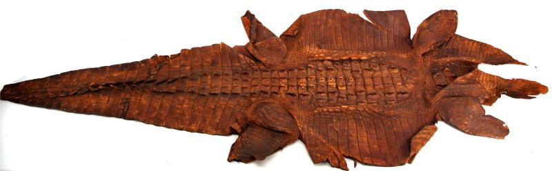 SoldALLIGATOR Skin or ALLIGATOR Hide with its Head and FeetALLIGATOR Skin or ALLIGATOR Hide. It is mounted with its Head, Feet, and Claws. It measures 91" Long x 42.5" Wide and has several holes. TAXIDERMY HIDES See Sold Price