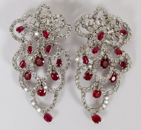 SoldGIA Ruby And Diamond Dangle EarringsApproximately 7.48 Carats Rubies And 1.22 Carats Diamonds Set In 14k White Gold. 1 1/8 Inches Long. Scroll Through All Photos To View GIA Certificate Information. Wire Transfer Or In-Person Cashier'sSee Sold Price