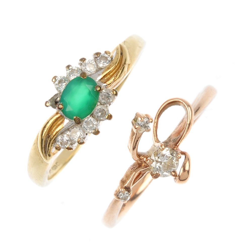 (65347)Two 9ct gold gem-set rings.