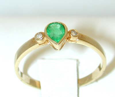 14k Gold 0.6 Ct Vivid Green Natural Emerald & Diamond Ring