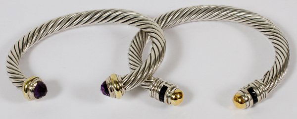 6CT AMETHYST SILVER & GOLD BANGLE BRACELETS TWO