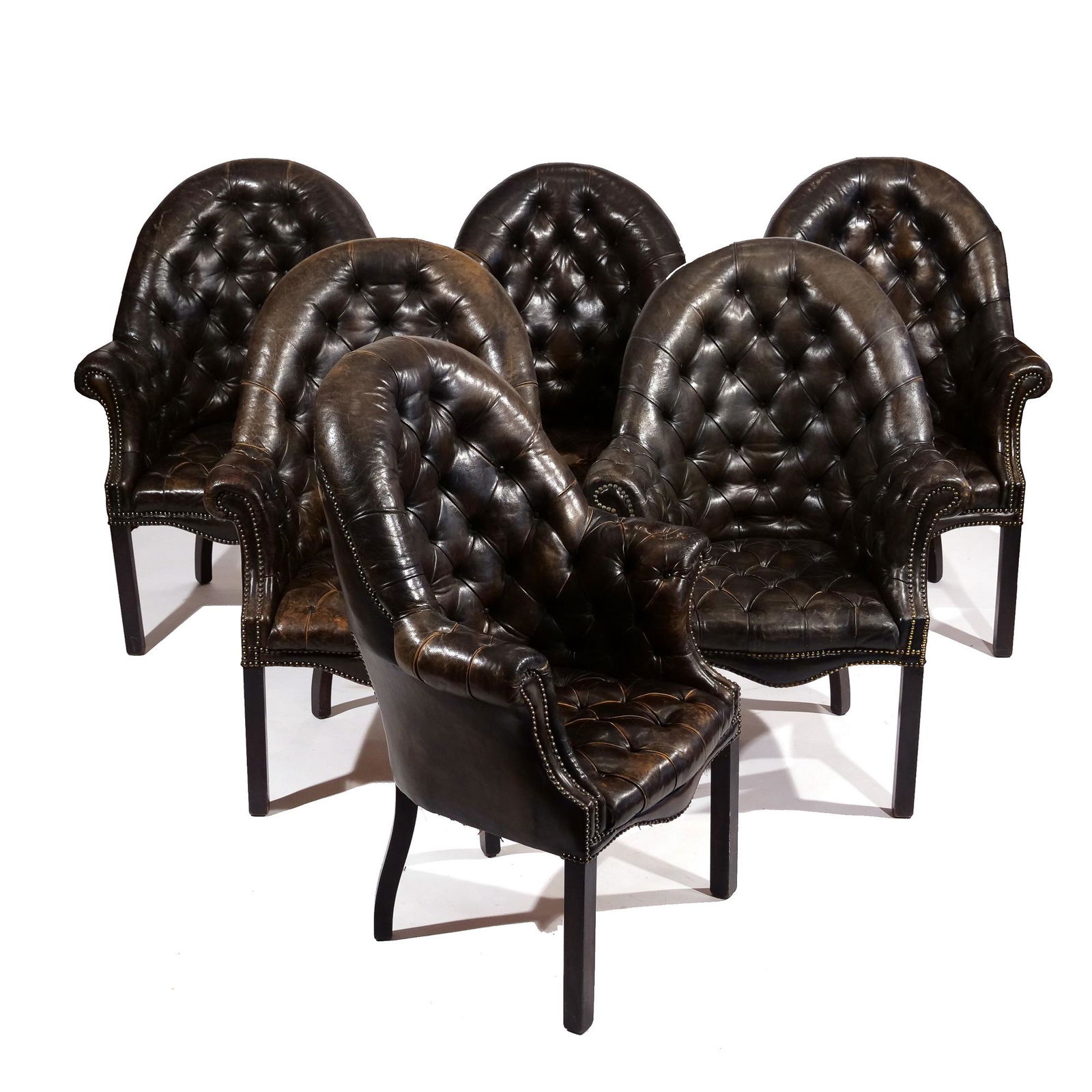 (6pc) ANTIQUE TUFTED LEATHER ARMCHAIRS